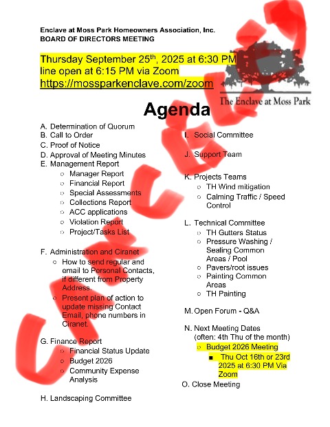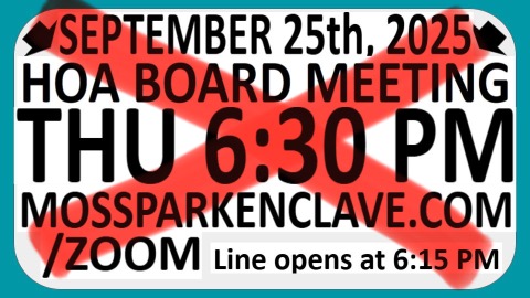 HOA BOARD ZOOM MEETING IS OPEN ONLY TO HOMEOWNERS.
